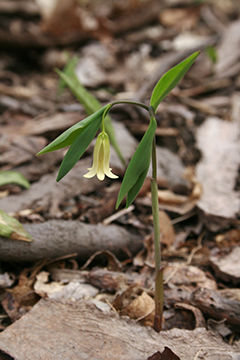 Sessile Bellwort, aka Wild Oats, at Eagle Creek State Nature Preserve in Ohio, USA.
